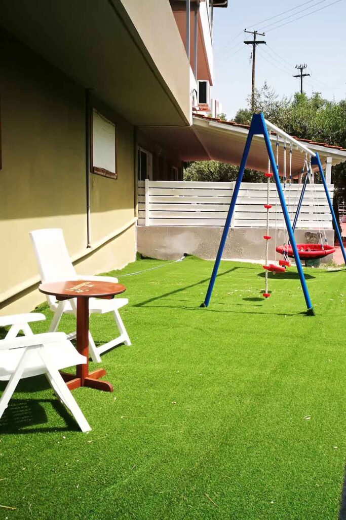 You can relax on the terrace, enjoying a coffee or a meal from the apartment’s fully equipped kitchen.